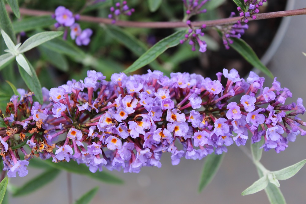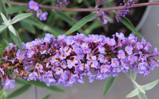 Krzew o wysokości do 1,5 metra,. Liście lancetowate, od spodu pokryte kutnerem, kwiatostany kłosowate, w kolorze niebieskim o długości do 25 cm. Pędy wzniesione, rozchylają się na boki pod wpływem ciężaru kwiatów.Polecana do ogrodów przydomowych.