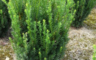Krzew o wyprostowanym pokroju.Średnie tępo wzrostu do 2 m wysokości.Sztywne, wzniesione pedy, intensywnie zielone igły.Klon męski nie zawiązuje owoców.Gleba żyzna i wilgotna.Polecny na ciete żywopłoty.