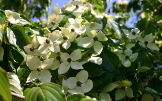 Duży krzew, dorasta do wysokości około 3 m. Liście zielone, w jesieni przebarwiają się na pomarańczowo-czerwony kolor. Kwiaty duże białe, z delikatnym rózowym odcieniem. Owoce jadalne, różowe na długich szypułkach. Wymagania siedliskowe i stanowiskowe identyczne jak inne Cornus kousa. Polecana do nasadzeń soliterowych.