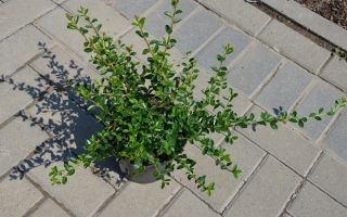 Płożący, gesto ugałęziony, zimozielony krzew. Osiąga około 0,25 metra wysokości i do 1,5 m szerokości. Liście drobne, ciemnozielone z połyskiem. Część liści w jesieni przebarwia się na pomarańczowo. Kwiaty białe, owoce pomarańczowo-czerwone. Małe wymagania glebowe, stanowiska słoneczne do półcienistych. Wrażliwa na niskie temeratury, najlepiej zimuje pod warstwą śniegu. Idealna roślina okrywowa, polecana do obsadzania skarp.